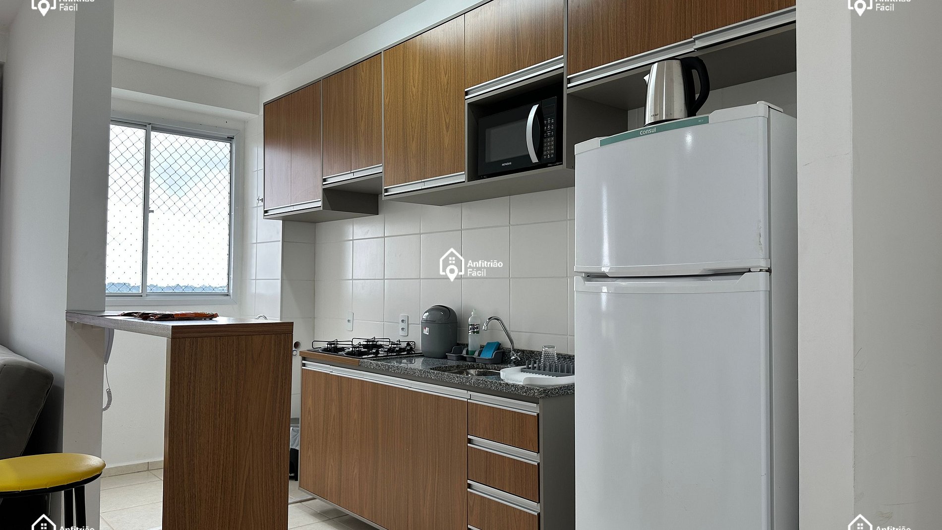 Apartamento 2 quartos, 1 banheiro social, totalmente equipado e climatizado em todos os ambientes. Suite com banheiro privativo, quarto adicional, cozinha integrada. Ideal para famílias e grupos pequenos. Condomínio seguro com portaria 24h. Wi-Fi de alta velocidade incluso. Perfeito para negócios e turismo